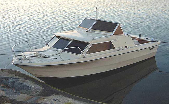 Glastron Gulfcruiser V-205 1968 Tässä veneessä on paikoillaan vielä alkuperäinen moottori OMC Sterndrive 155 hp. Se pohjautuu Buickin V-6 lohkoon. Vene ja moottori ovat ihan ajokunnossa, mutta aivan täydellinen entisöinti vaatii paljon työtä. Lainatakseni työkaveria: "siihen tarvii vain tehdä sisä ja ulkopuoli, niin kyllä siitä vene tulee". Hyvä saitti netissä on vanhemmista Glastron veneistä kiinnostuneille www.classicglastron.com. |